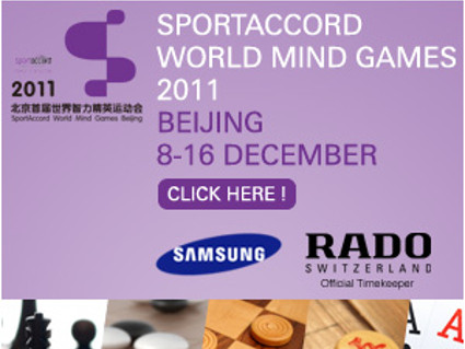 Featuring the world’s top athletes in the respective fields, the inaugural SportAccord World Mind Games took place in in the Beijing International Convention Center, in Beijing, China, 9-16 December 2011.