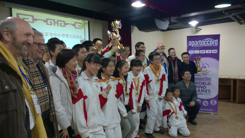During the afternoon on Saturday, the WBF President, Gianarrigo Rona together with World Champion Wang Wenfei and members of the WBF Executive Council were invited to present the medals and trophies to the bridge winners of the Beijing World Youth Mind Games.