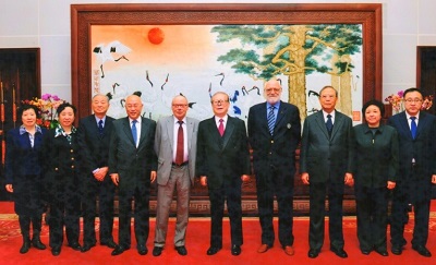 The meeting was also attended by the President of the WBF Congress Mr. Zeng Peiyan, the President of CCBA Mr. Xiang Huaincheng, the WBF Executive Council Member Mrs. Chen Zelan and the President of the Beijing Bridge Association Mr. Wan Siquan and the group is pictured below.
