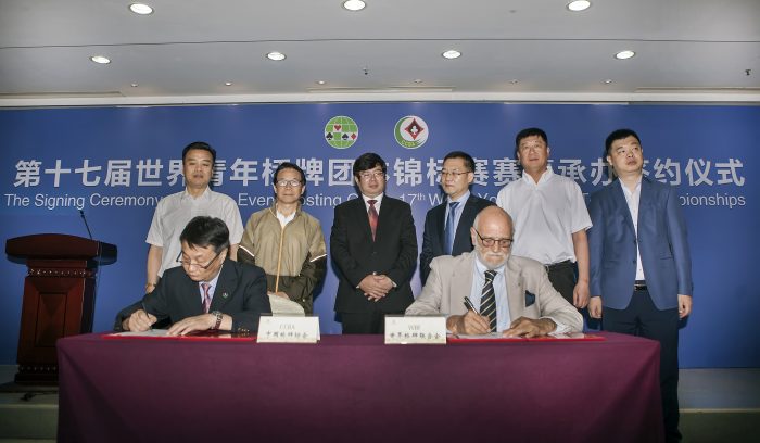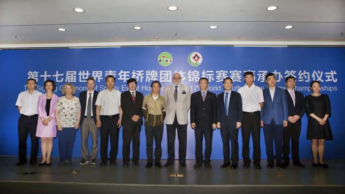 On 24th and 25th May, the WBF President Gianarrigo Rona met the CCBA Vice President Ge Feng, the Deputy Director General of Jangsu Sports Bureau Yan Zhengming, the Deputy Chief of Wu Jiang District Tang Weiming and the representatives of the LOC in Suzhou, Wu Jiang District, China. The meeting was held in order to define the details of the organisation of the 17th World Youth Bridge Teams Championship to be held at the Li Ze Culture and Sports Palace in Suzhou from Wednesday 8th to Saturday 18th August 2018.