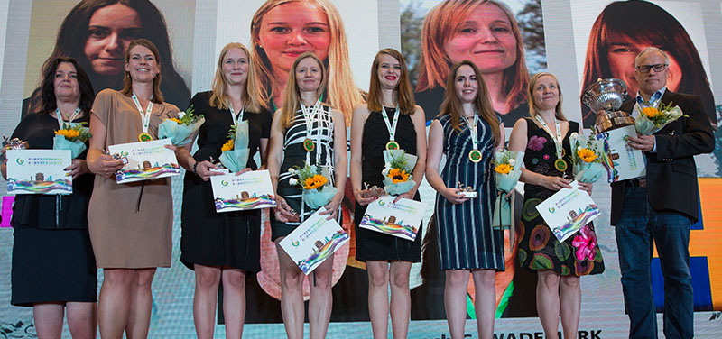 1.Sweden: Kathrine Bertheau, Sanna Clementsson, Ida Gronqvist, Jessica Larsson, Emma Ovelius, Cecilia Rimstedt, Kenneth Borin (npc), Carina Wademark (coach).