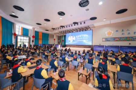 The visit began with an inspiring exchange session hosted by Jianping Experimental Primary School (Nanyan Campus), under the theme “Show the Charm of Bridge, Welcome International Guests.” The event, coordinated by the Hefei Economic Development Zone Bridge Association, showcased how bridge is being integrated into the local school curriculum, combining classroom learning, club activities and competitions.