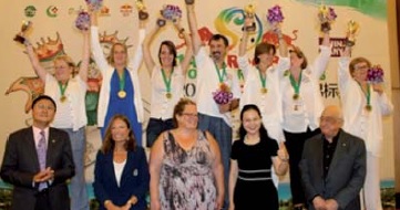 2. CHINA RED TEAM: Lu Yan, Ran Jing Rong, Wang Hongli, Wang Wen Fei, Wu Shaoyong, Zhang Yu (China), Wang Xiaojing (Coach).