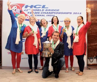 Morella Pacheco: By qualifying and playing in the 2015 Venice Cup, Morella obtains the Guinness record of participations in WBF Women’s events. She played: Montecarlo 1976, Valkenburg 1980, New York 1981, Sao Paolo 1985, Ocho Rios 1987, Yokohama 1991, Salsomaggiore 1992, Santiago 1993, Albuquerque 1994, Beijing 1995, Rhodes 1996, Maastricht 2000, Pairs 2001, Montreal 2002, Menton 2003, Istambul 2004, Estoril 2005, Verona 2006, Beijing 2008, Sao Paulo 2009, Philadelphia 2010, Veldhoven 2011, Lille 2012, Chennai 2015.