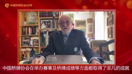 Videos congratulating the CCBA were made by Mr Gianarrigo Rona, President of the World Bridge Federation and by Mr José Damiani, President Emeritus of the World Bridge Federation.(click on their names to view their videos)